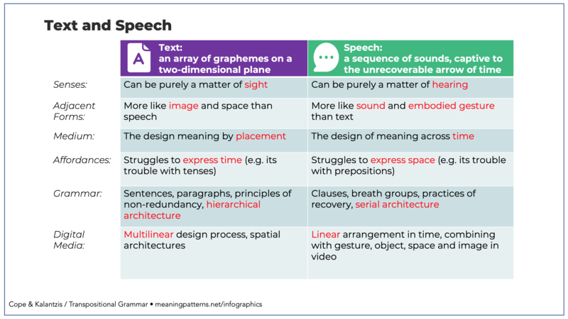 - Cope, Bill and Mary Kalantzis, 2020, Making Sense: Reference, Agency and Structure in a Grammar of Multimodal Meaning, Cambridge UK: Cambridge University Press, pp. 30-33. [§ markers are cross-references to other sections in this book and the companion volume (AS); footnotes are in this book.]