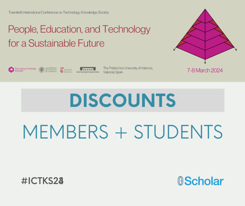 Discounts are available for Student and Returning Members. Submit your Registration Request today! Twentieth International Conference on Technology, Knowledge, and Society
